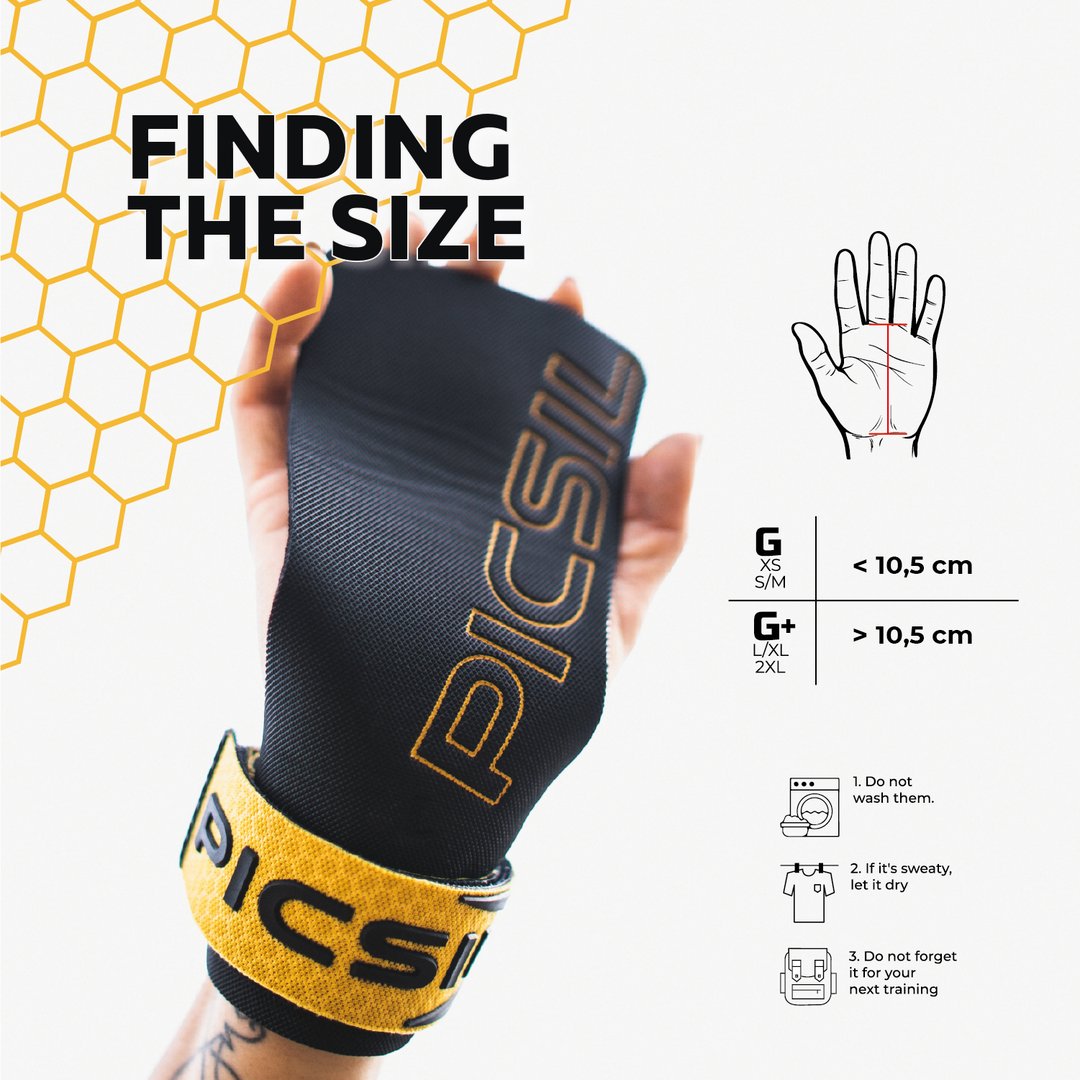 Come già detto, la nuova tendenza a non inserire le dita nella callera ha dato origine a un nuovo tipo di callera senza fori. Questo nuovo tipo di callera significa che le dita sono lasciate in aria e non c'è contatto tra la barra e il palmo della mano. Nel caso delle nostre pinze, la versione senza fori è chiamata Golden Eagle Grips. Impugnature Golden Eagle. Si tratta di una presa creata su richiesta degli atleti più esigenti. La superficie del palmo è più ampia per offrire una maggiore protezione, così come la zona del polsino, che è più spessa per un maggiore sostegno e comfort.