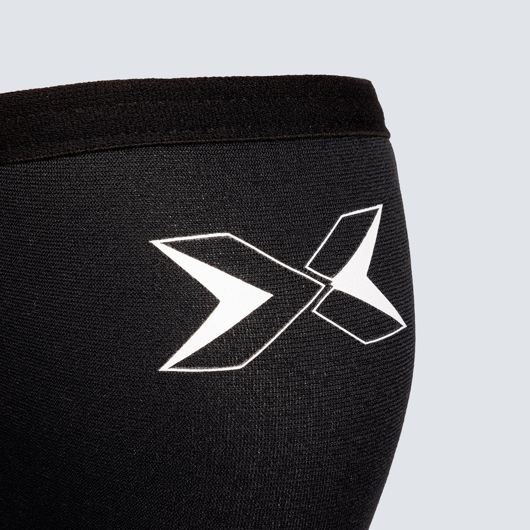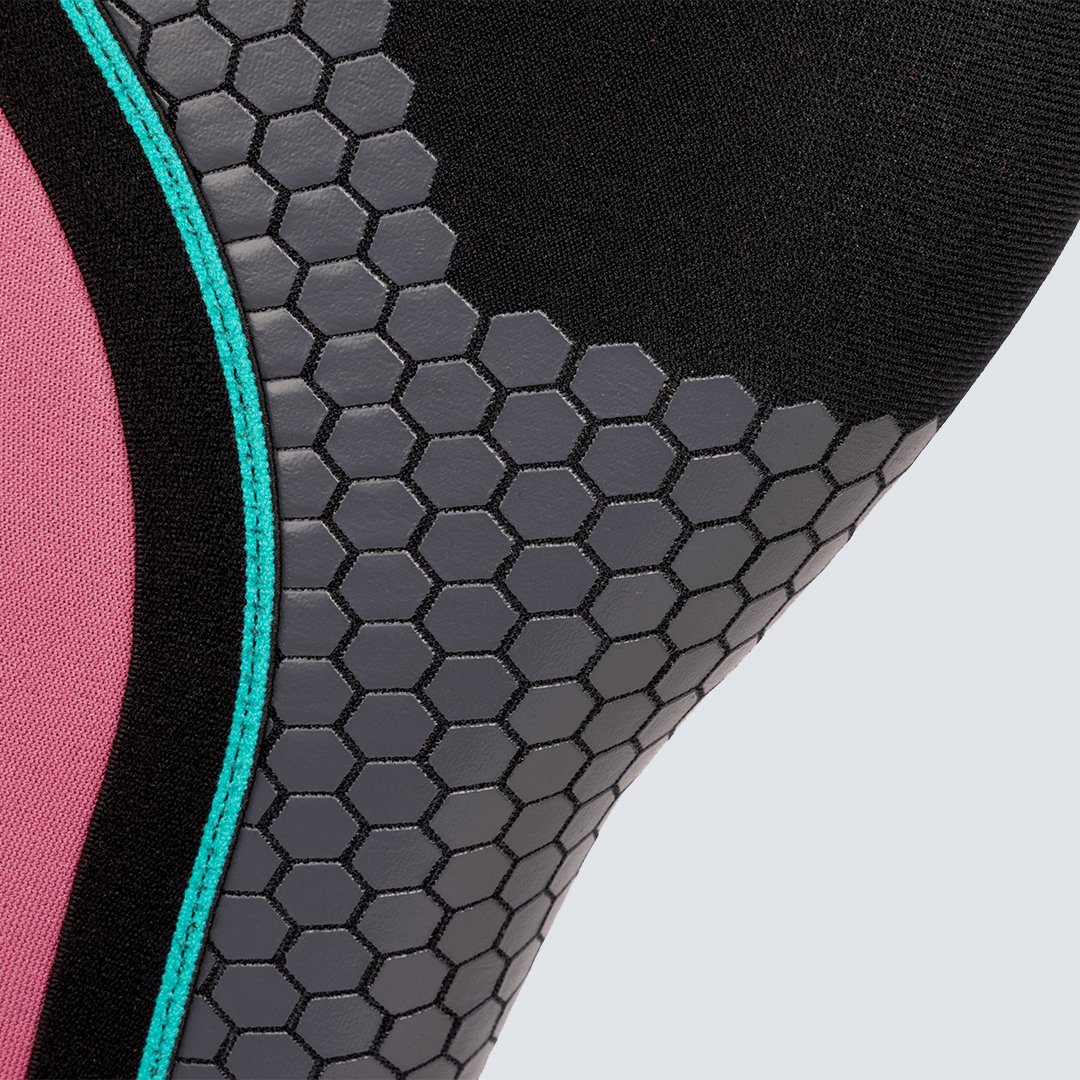 La versione 0.2 delle ginocchiere Hex Tech presenta un design migliorato con strisce di gomma che offrono una maggiore presa e supporto, evitando che scivolino lungo la gamba mentre fai esercizio.