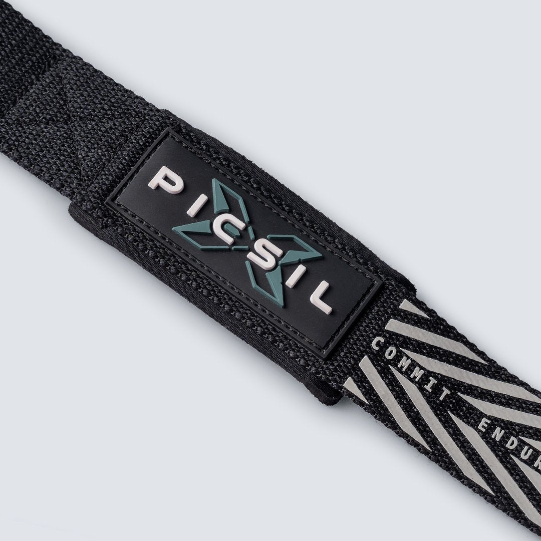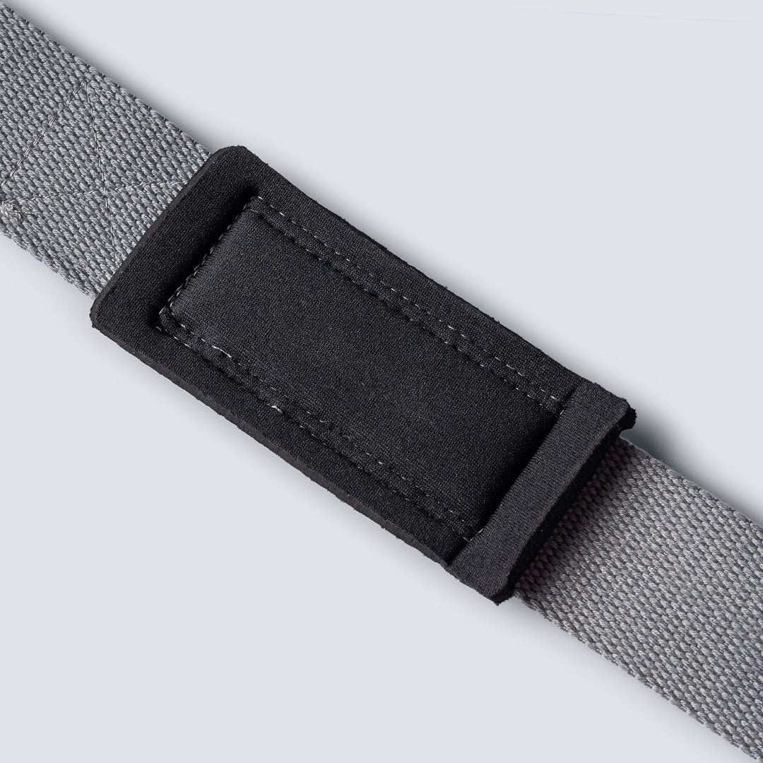 Cinghie da sollevamento pesi con dettaglio gommato che forniscono una presa aggiuntiva.
