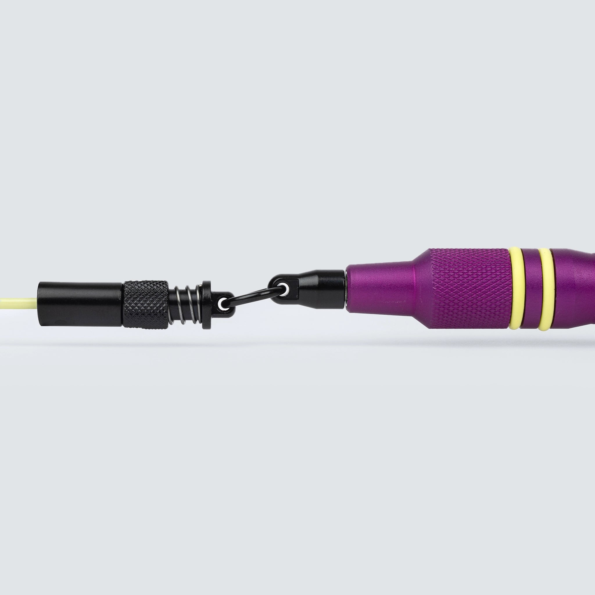 - Aggancio Rapido e Regolazione Precisa: La Corda Insigne incorpora un sistema di aggancio rapido e permette di regolare il cavo direttamente nella testina mediante un fermo, offrendo una configurazione personalizzata e sicura in ogni salto.