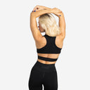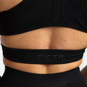 Dettagli di costruzione con finitura a coste: I dettagli di costruzione con finitura a coste offrono una vestibilità ottimale e sicura, mantenendo il reggiseno in posizione anche durante gli allenamenti più intensi.