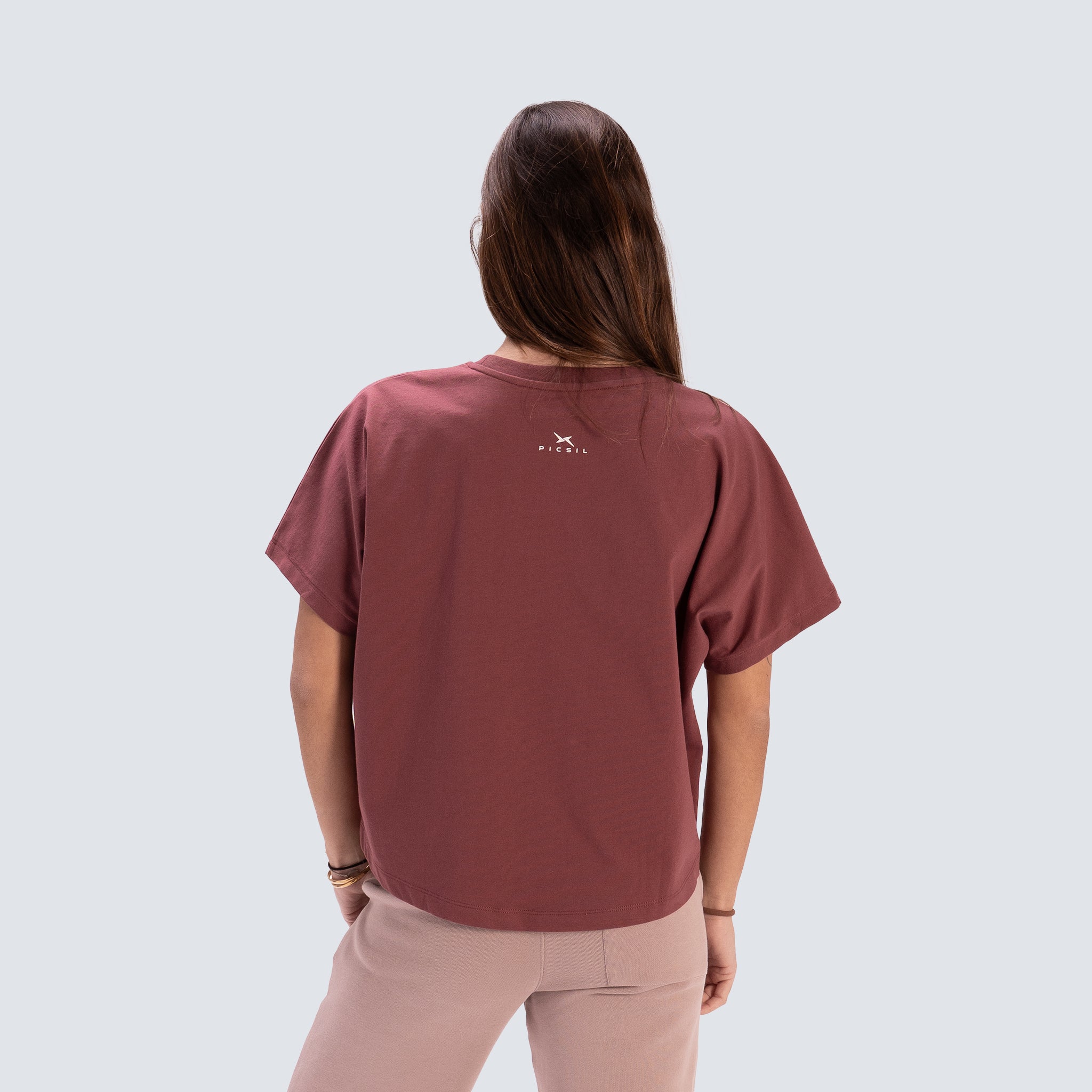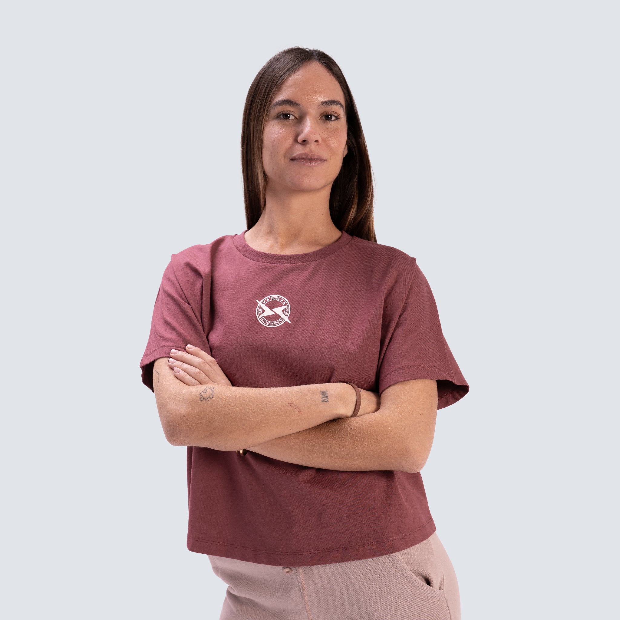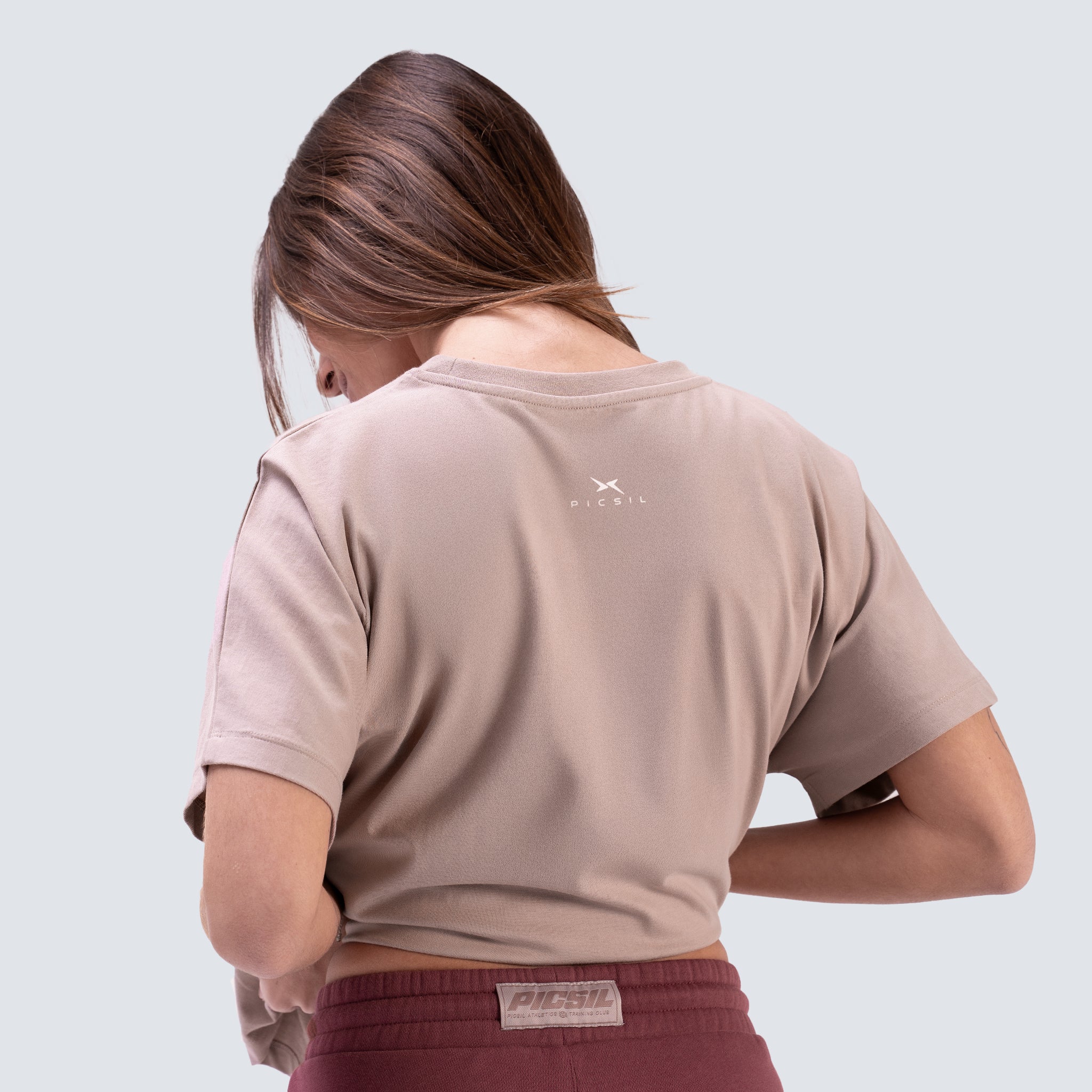 Maglietta cropped per donna progettata per un look pulito e attuale. Realizzata in 100% cotone organico portoghese, offre un tocco morbido e una buona traspirabilità, ideale per indossare quotidianamente o per i tuoi allenamenti. Il suo fit cropped oversize offre una caduta rilassata e si abbina molto bene con pantaloni a vita alta, jogger o flare.