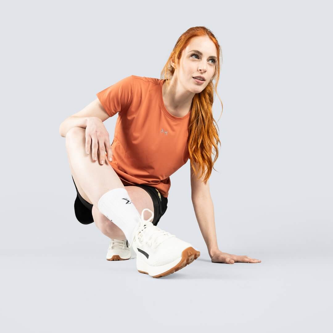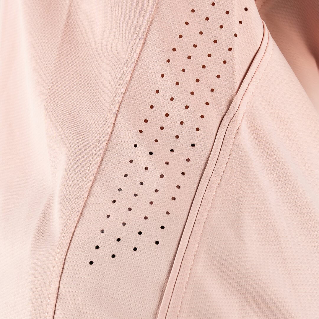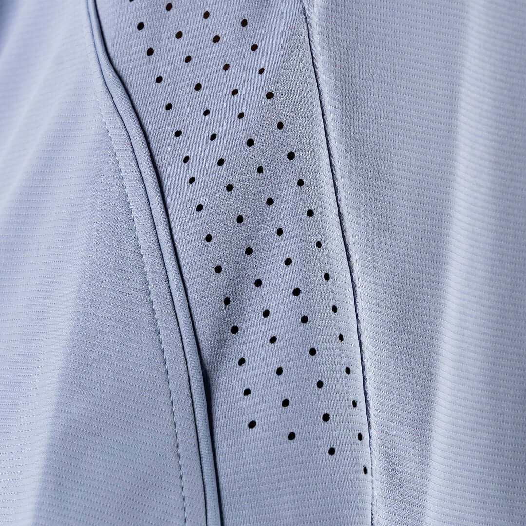 Tecnologia di microforatura: Include dettagli di microforatura strategicamente distribuiti in zone chiave come schiena e fianchi. Queste microforature permettono una circolazione d'aria costante, migliorando la termoregolazione del corpo e prevenendo l'accumulo di sudore. Il risultato è un capo che si sente asciutto, leggero e fresco anche nei WOD più impegnativi o all'aperto sotto il sole.