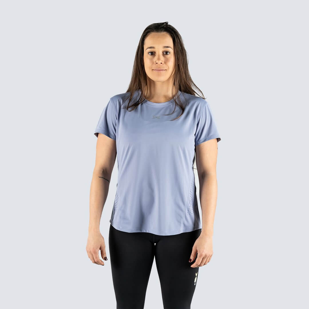 Progettata per donne che si allenano con intensità e stile, questa è una maglietta tecnica ultraleggera che combina tecnologia tessile avanzata con finiture premium. Realizzata in 100% poliestere da 122 g/m², il suo tessuto microforato permette una traspirazione ottimale, mantenendo il corpo asciutto anche durante i WOD più impegnativi. Il suo design aderente, le cuciture rinforzate e la finitura riflettente rendono questo capo un alleato perfetto sia dentro che fuori dal box.