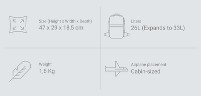 Ventaja clave: hasta 33Lcuando lo necesitas, 26L cuando quieres ir compacto.
